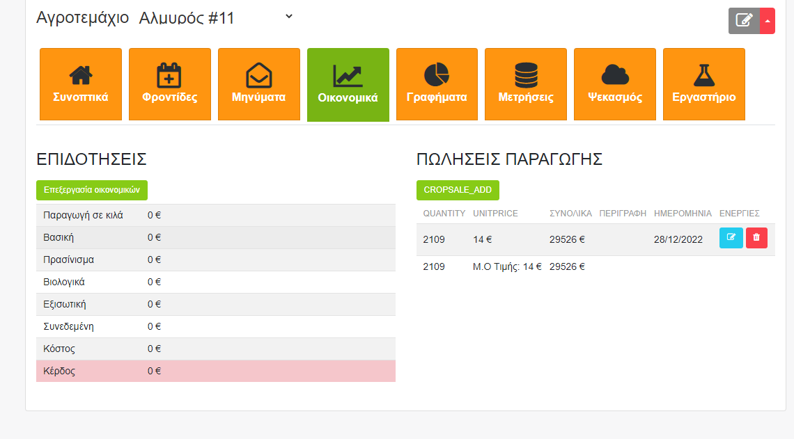 Η ύπαρξη μίας πλατφόρμας όπως το AgroBox στην οποία ο αγρότης μπορεί να καταχωρεί βασικά οικονομικά στοιχεία, όπως πωλήσεις προϊόντων και βασικά έξοδα καλλιέργειας για τα περιβόλια του είναι πολύ σημαντική.