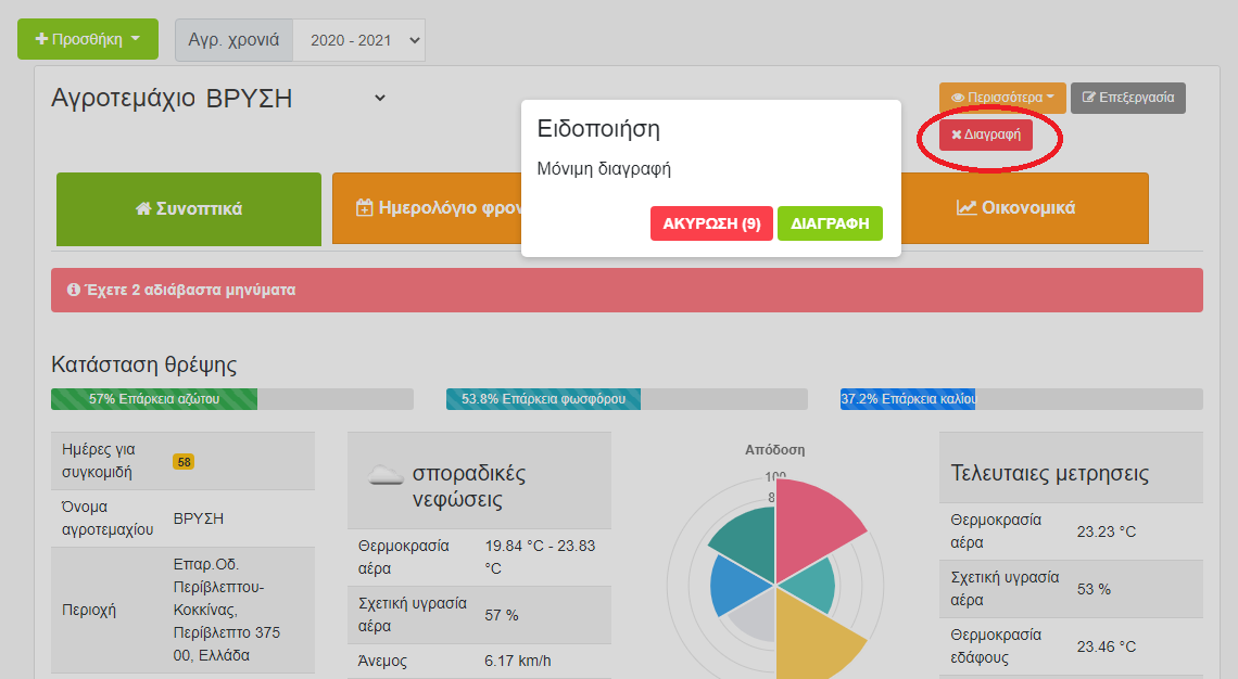 ένα αγροτεμάχιο ή θερμοκήπιο